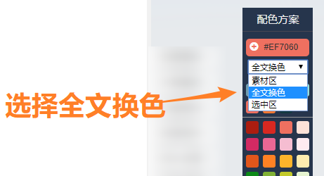1、點(diǎn)擊右側(cè)配色方案下的 ▼,選擇『全文換色』。
