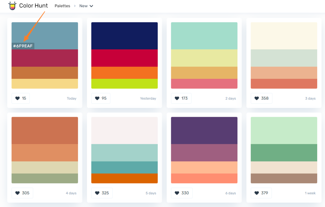說了這么多,大家還是不知道該用什么顏色來搭配,沒關(guān)系,三兒給大家推薦1個(gè)配色網(wǎng)站(https://colorhunt.co/),順便教大家如何吸取配色。