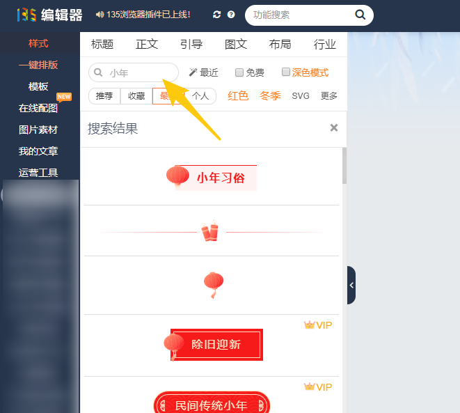 本次上新的小年樣式,一共20個,包含正文、標題、二維碼、圖片、引導關注等多種樣式,在135編輯器內,搜索關鍵詞:小年,即可使用。