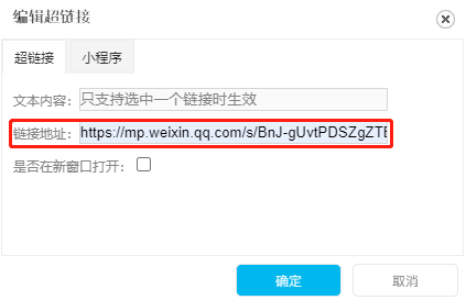 三、接下來,鼠標(biāo)選中文字內(nèi)容,點(diǎn)擊工具欄中的【編輯超鏈接】按鈕,在鏈接地址一欄中輸入歷史文章鏈接,點(diǎn)擊確定即可。