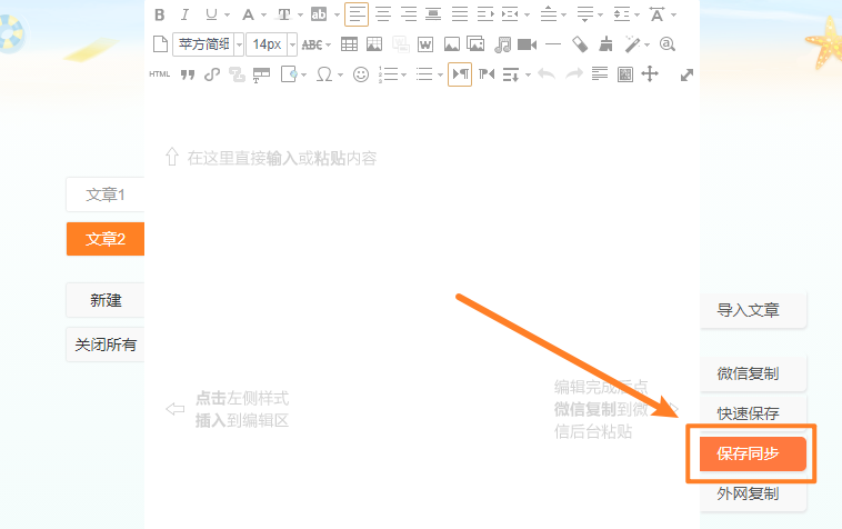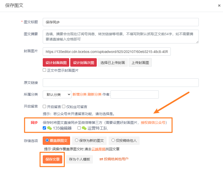 正確的做法是,授權(quán)公眾號(hào)之后,再使用保存同步功能,同步到微信公眾號(hào)。