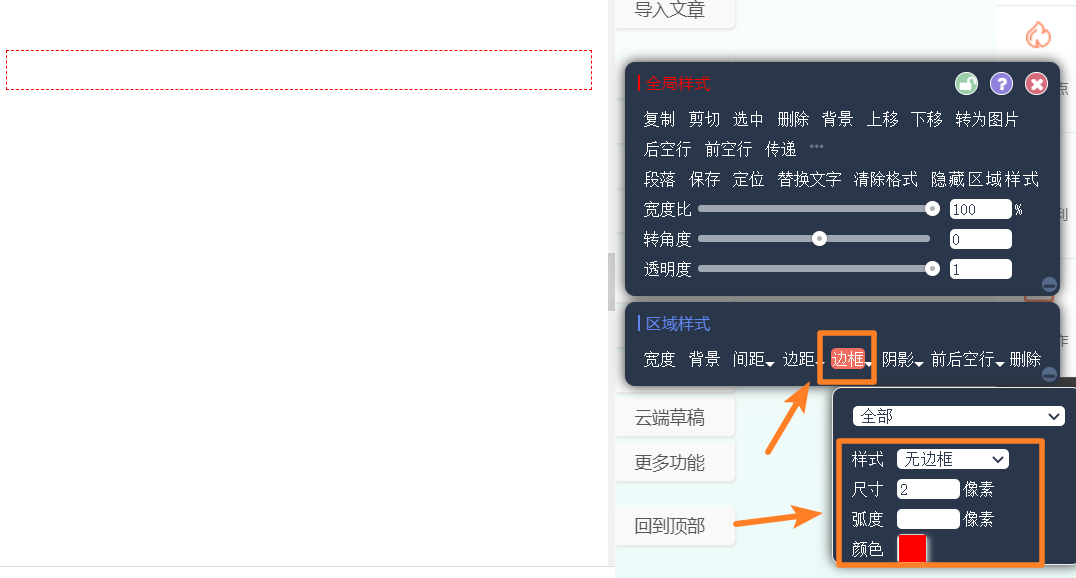 然后再點(diǎn)擊邊框,設(shè)置邊框的樣式、尺寸、弧度和顏色;最后再到微信公眾號(hào)后臺(tái)上傳音樂即可。