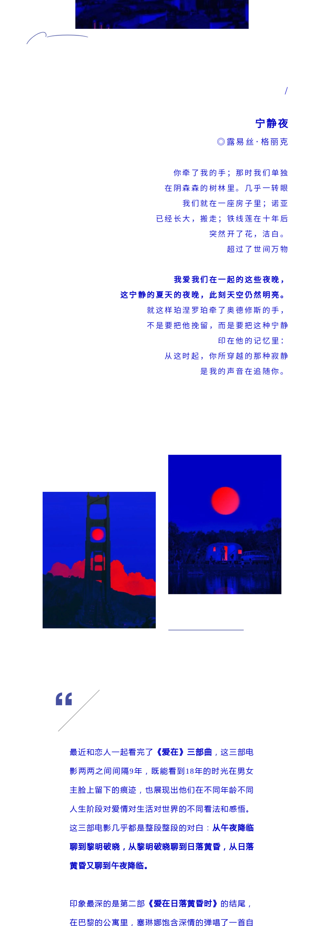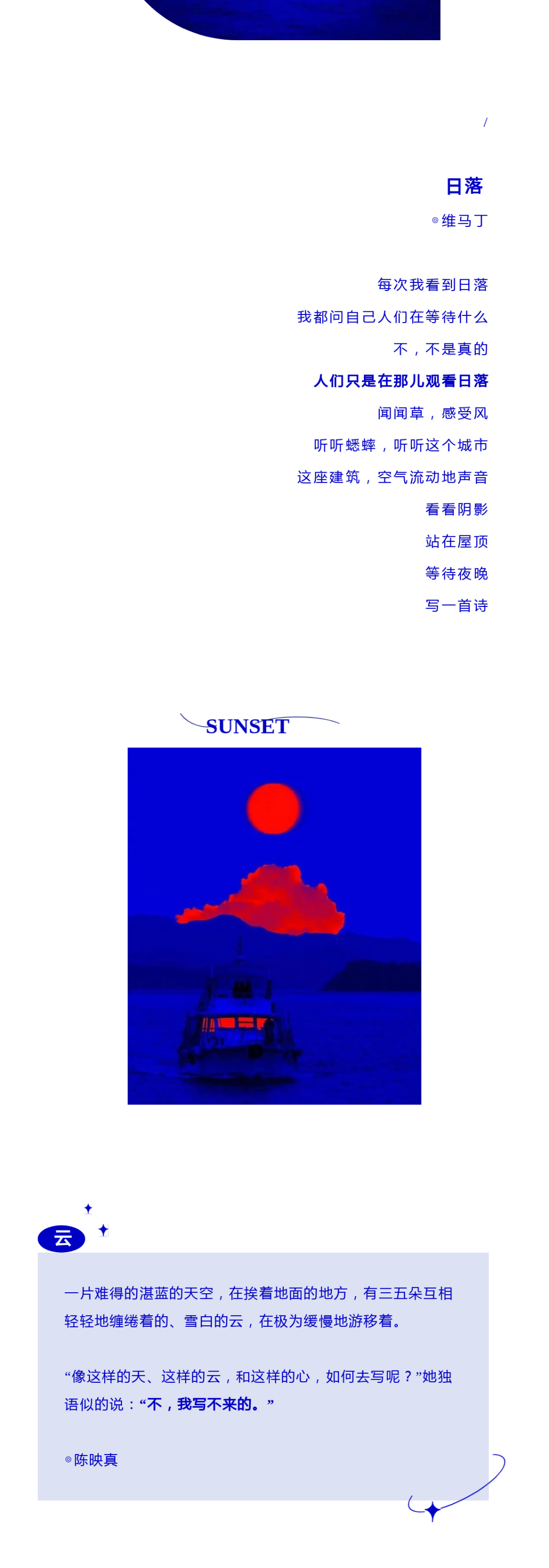 ④ 配色和內(nèi)容配合:藍(lán)色給人的感覺是溫柔,而內(nèi)容本身的散文及詩(shī)歌要表達(dá)的情緒也是溫柔的,并非情緒激烈的,所以配色上還有一個(gè)亮點(diǎn)就是和內(nèi)容達(dá)到了和諧。