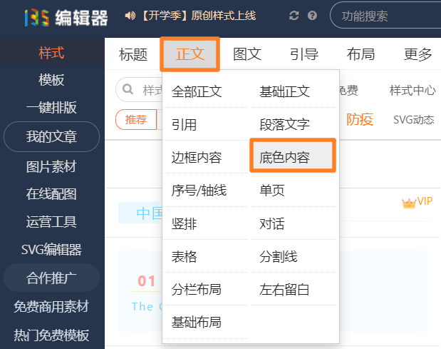 這篇文章的雙層背景設(shè)置其實(shí)很簡(jiǎn)單,首先點(diǎn)擊菜單欄上方的背景按鈕,添加一個(gè)全局的背景。