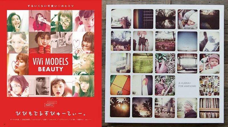即大小不需要統(tǒng)一、圖片與圖片之間也不一定要嚴格對齊,效果比較靈活,設計感較強,常用于雜志排版中。