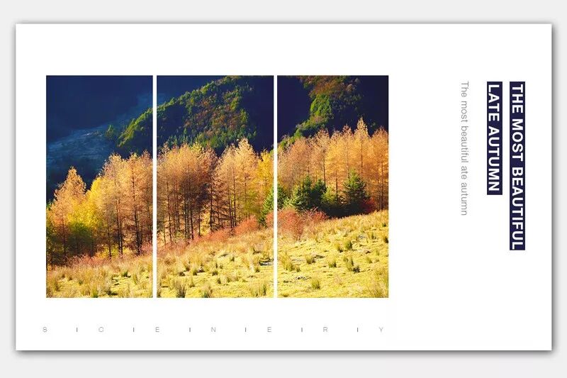 即把一張圖片拆分成幾份,然后隔開一點排列,這么做比單獨放一張圖片會更有設計感和趣味性,風景類圖片適合這么處理。