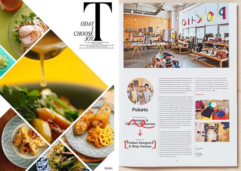 圖片與色塊組合在一起排版既不會像只有圖片那么單調(diào),還可以利用色塊排文字。不過注意色塊的顏色不要太多,且顏色最好來自圖片。