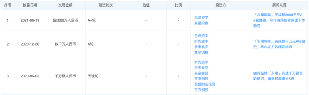 6月11日,永璞咖啡已完成超5000萬元的A+輪融資,本輪投資方為眾源資本和麥星資本。