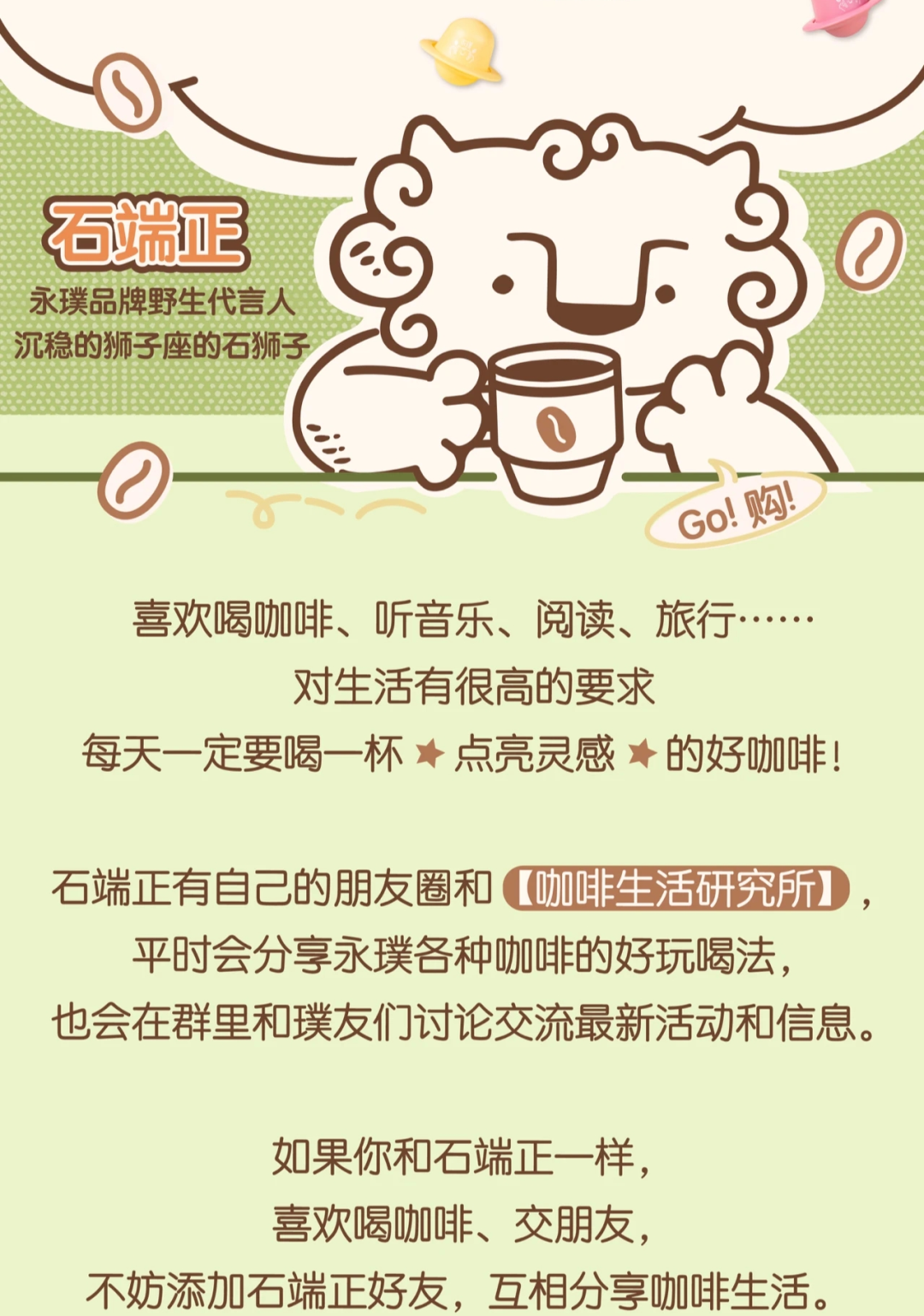 這只萌趣的石獅子,成為了永璞咖啡一個(gè)非常核心的視覺錘,帶來了良好的品牌傳播效應(yīng),也給品牌增加了溫度,用“石端正”拉近與消費(fèi)者之間的距離。