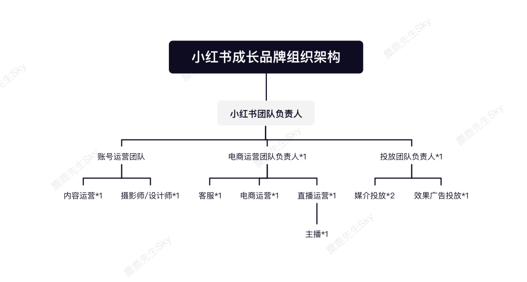 推薦給總團(tuán)隊人數(shù)在80-100人的成長型團(tuán)隊配置,當(dāng)然這是僅算小紅書運(yùn)營的組織架構(gòu)情況下,如果與其他團(tuán)隊放在一起,其實還是可以在合并的,比如客服其實是可以共用的,直播運(yùn)營也是可以共用的,所以單純看小紅書運(yùn)營團(tuán)隊是這樣,但放在整個公司里仍然需要在調(diào)整。