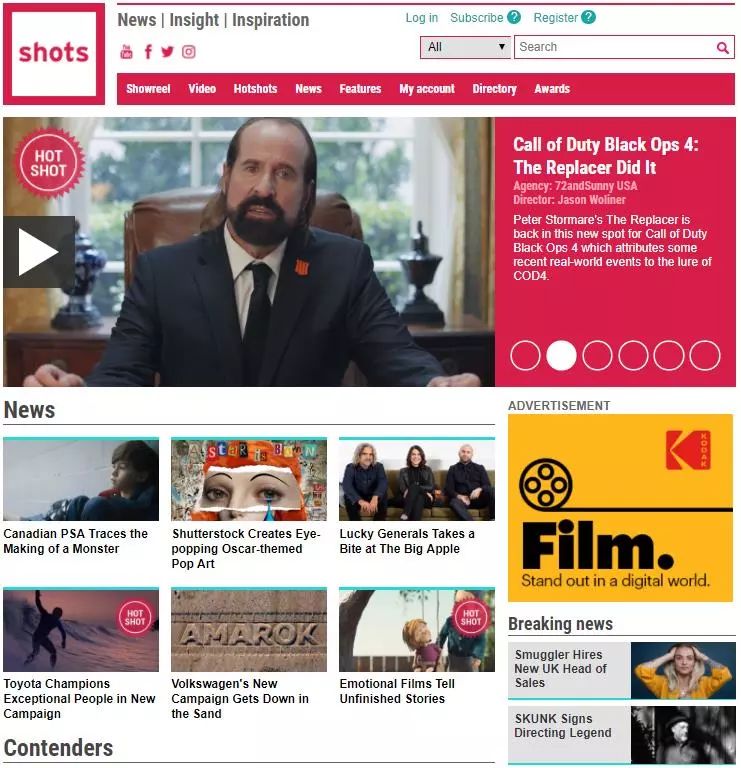 Shots是全球最著名的廣告影片集,以匯集展示全球頂級(jí)廣告創(chuàng)意為宗旨。每期Shots都擁有超過42000位廣告創(chuàng)意及電視制作領(lǐng)域的專業(yè)讀者,被認(rèn)為是獲取這個(gè)行業(yè)最前沿資訊的源泉。