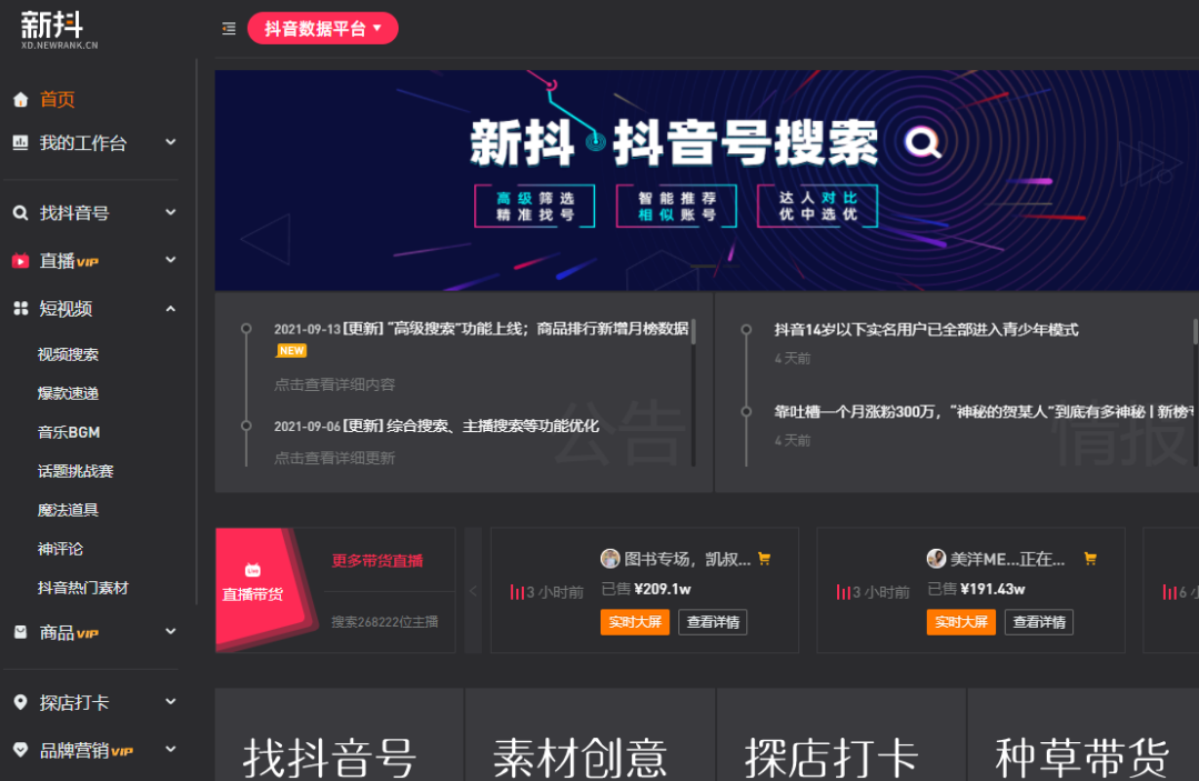 自從抖音火了后,文案人少不了經(jīng)常要寫抖音相關(guān)的策劃和文案。這個(gè)平臺(tái)就不僅提供抖音熱門視頻、直播、爆款商品、優(yōu)質(zhì)賬號(hào)、抖音話題挑戰(zhàn)賽等抖音創(chuàng)意素材,你還可以查找抖音號(hào)及MCN機(jī)構(gòu)排行、熱門音樂BGM、神評(píng)論等。ADGuider