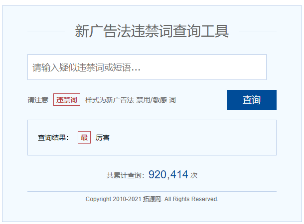 這里可以在線進(jìn)行新廣告法違禁詞敏感詞的檢測(cè),不過也并不是絕對(duì)的,更多是查詢可能敏感的詞,最終自己根據(jù)實(shí)際情況去判斷。