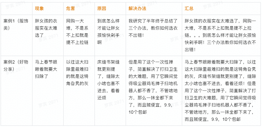 例:萬能文案技巧——現(xiàn)象+危害+原因+解決辦法。