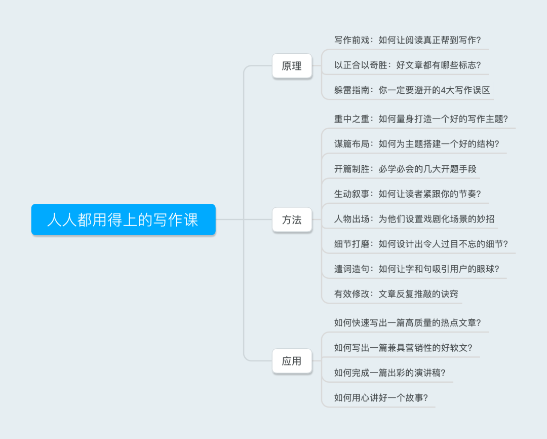 最后,他決定結(jié)合自己獨(dú)特的寫作經(jīng)歷,把知識(shí)點(diǎn)、個(gè)人經(jīng)驗(yàn)和對(duì)經(jīng)典作品的分析結(jié)合在一起,總結(jié)出一套方法論,定位就是:碎片化時(shí)代的注意力寫作法。