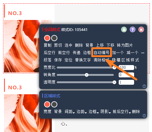 注意,自動(dòng)編號(hào)和傳遞功能只能在相同樣式中使用