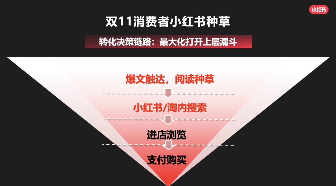 1)小紅書消費決策漏斗,也是小紅書的轉(zhuǎn)化鏈路。(算是簡單版)