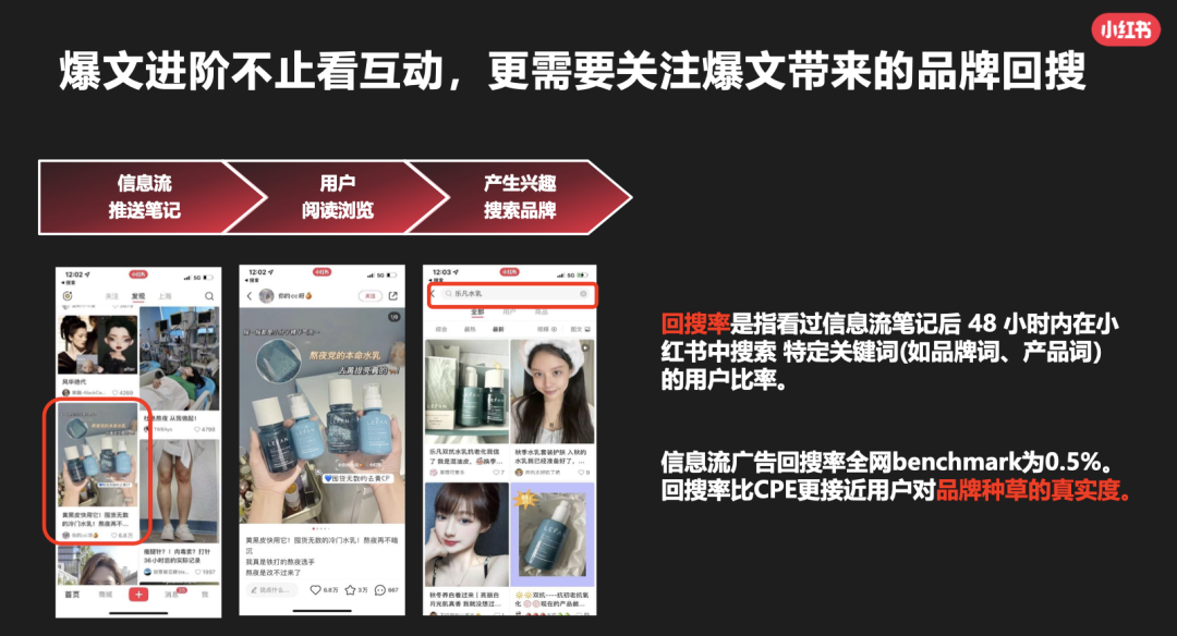 但這里又開始“主要講回搜率” 了,好像其他的筆記都不那么重要了,那么肯定得精準的筆記才能帶動回搜率了,是不是分散類型的筆記就不用投了?(感覺官方這里有點小矛盾,也就是策略和策略之前有沖突點,可能不是同一個人做的ppt)