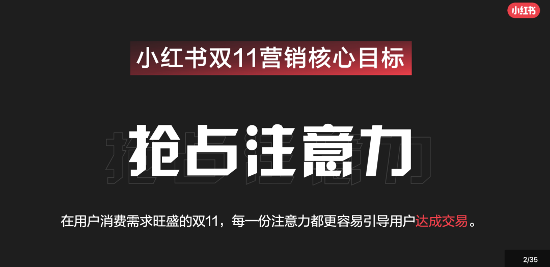 今年的小紅書雙11營銷核心定位在“搶占注意力”,而不是占據(jù)用戶心智或者完成交易閉環(huán)等,其實潛在的意思就是大家都承認了現(xiàn)在的互聯(lián)網(wǎng)格局,多個平臺影響用戶決策,淘寶完成交易轉(zhuǎn)化,而這里其實我們也可以窺見小紅書的商業(yè)意圖又走回了社區(qū)。(其實從去年就是這樣的路徑,但小紅書一直折騰電商,總想自己全閉環(huán),現(xiàn)在應該是真放棄了,做好自己的老本行)