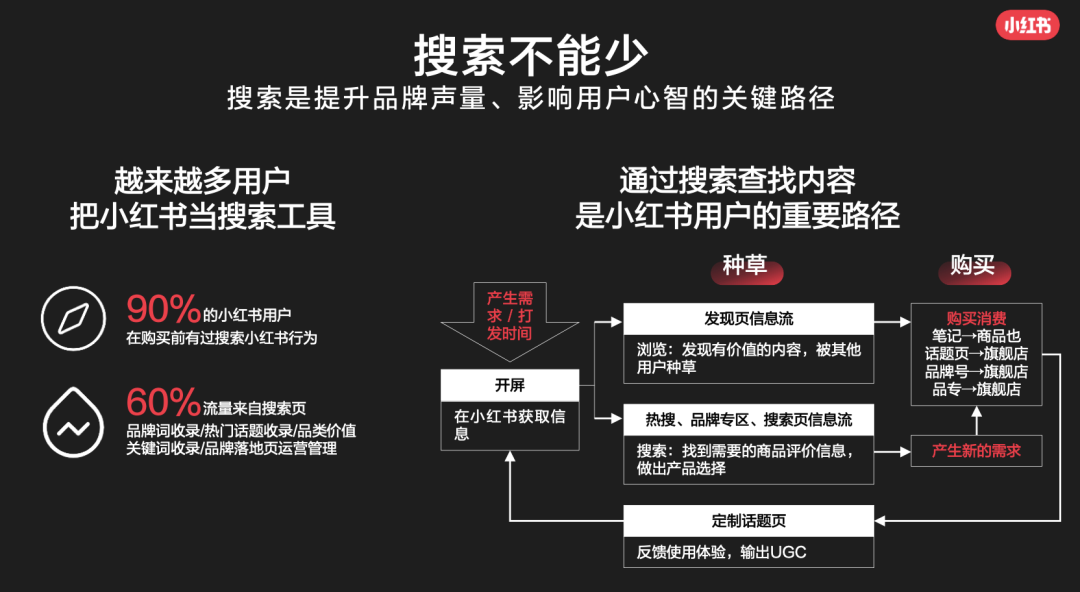 搜索筆記在小紅書很重要,某些程度來說,搜索之后的轉(zhuǎn)化購買率的確是更高的,而刷到筆記再去購買,其實這個概率沒那么高。