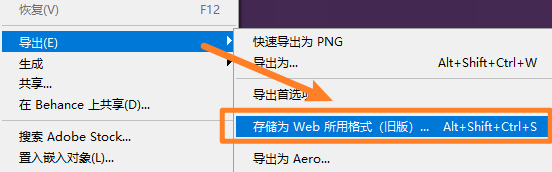 ● 點擊【文件】-【導(dǎo)出】-【存儲為Web所用格式】;