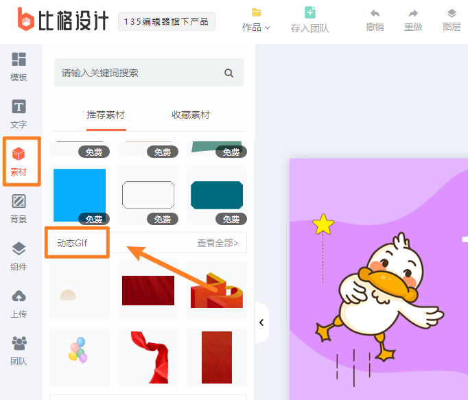 ● 在【素材】-【動態(tài)GIF】中還有更多好看的GIF動態(tài)素材,點擊就可以添加到編輯區(qū)中。