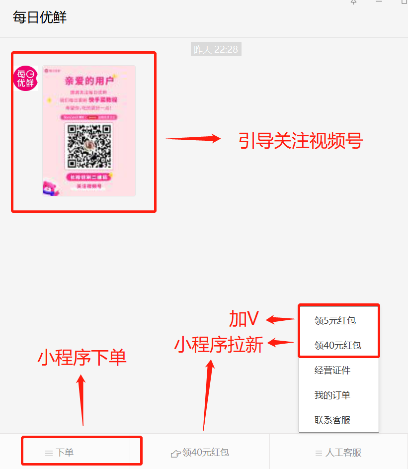 當(dāng)用戶通過公域渠道進(jìn)入到每日優(yōu)鮮私域(app、小程序、公眾號(hào)、個(gè)人號(hào)、社群等)里時(shí),下一步就需要轉(zhuǎn)化,而用戶轉(zhuǎn)化的場(chǎng)景在app和小程序中。需要激活用戶來打開app/小程序。