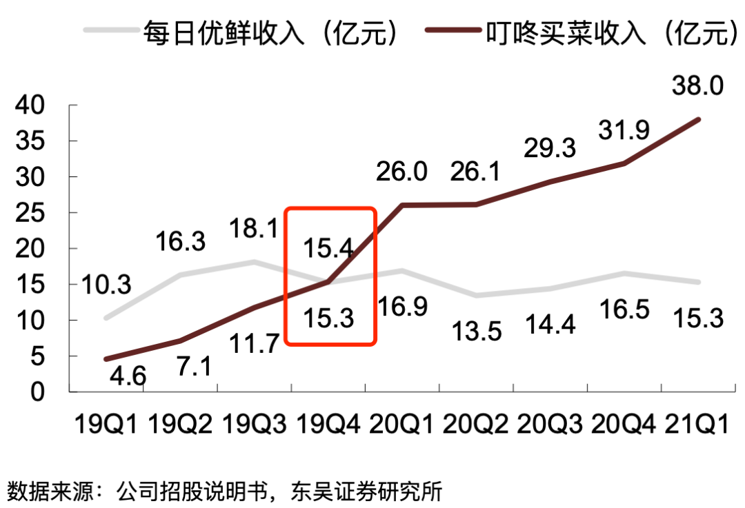 每日優(yōu)鮮與叮咚買菜收入情況對(duì)比: