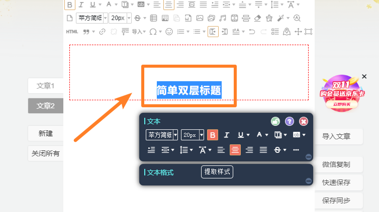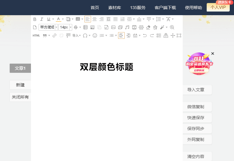 135編輯器最近更新了『文字陰影色』功能,我們可以直接在135編輯器里通過對文字陰影的自定義設置,來實現(xiàn)這種雙層標題的效果。
