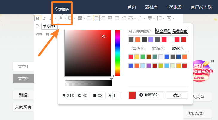 首先打開135編輯器,在編輯區(qū)中輸入標題文字并選中;
