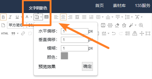 點擊『文字陰影色』按鈕,打開文字陰影設置;