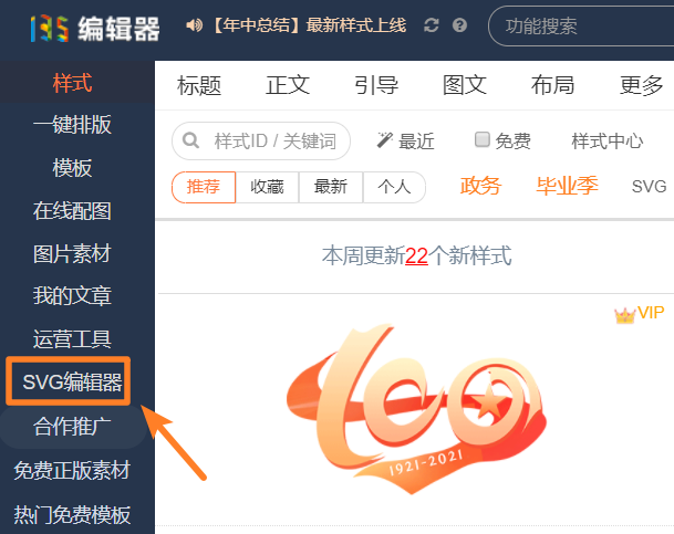 通過135編輯器左側(cè)入口進(jìn)入svg編輯器