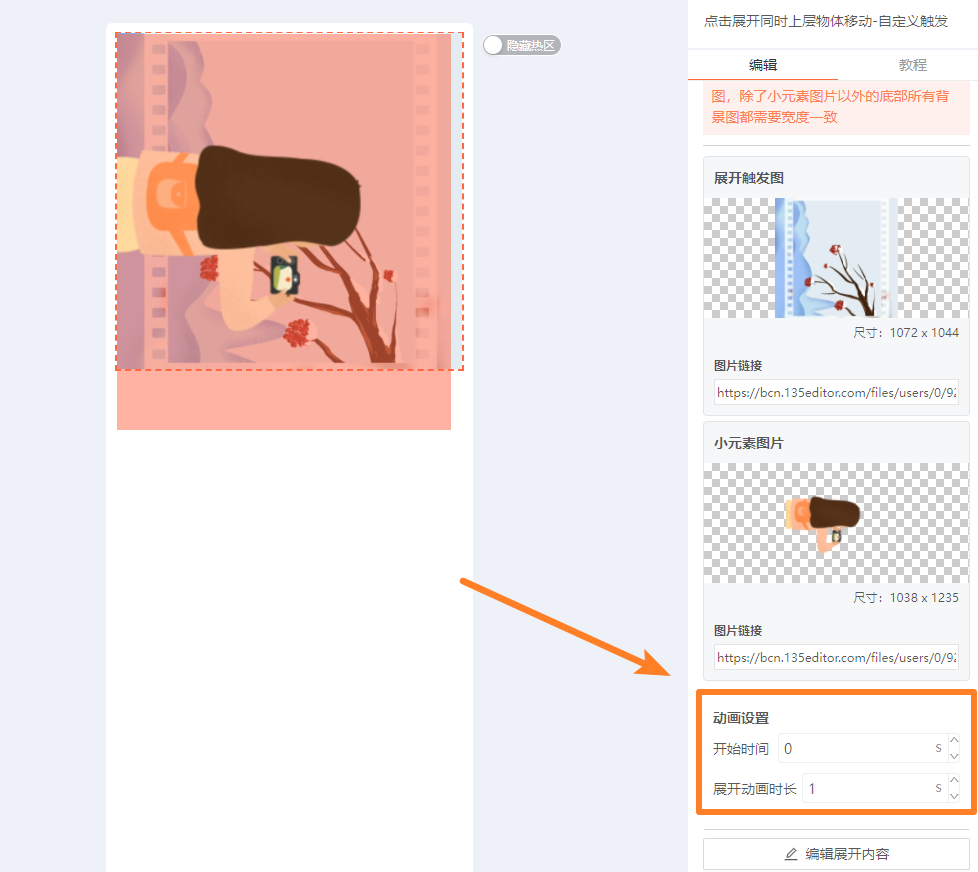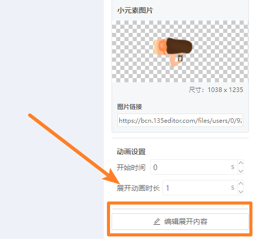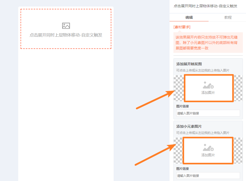 在編輯頁面右側(cè)點(diǎn)擊『添加圖片』按鈕,為素材添加觸發(fā)展開圖和小元素圖片