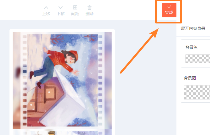 展開內(nèi)容編輯完成后,點(diǎn)擊頁面上方的『完成』按鈕,返回主編輯頁面