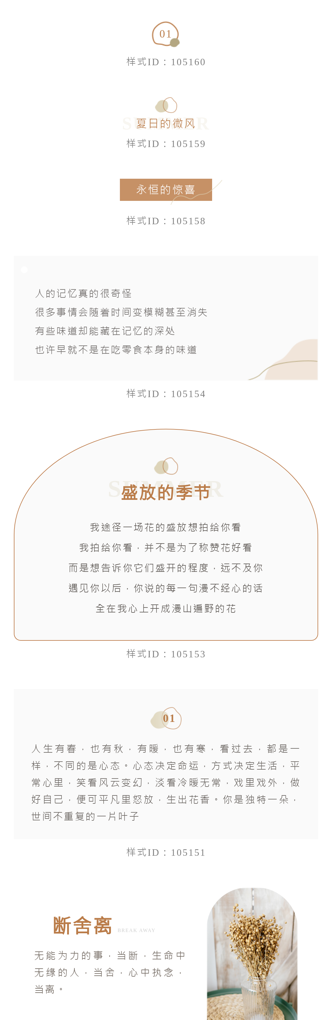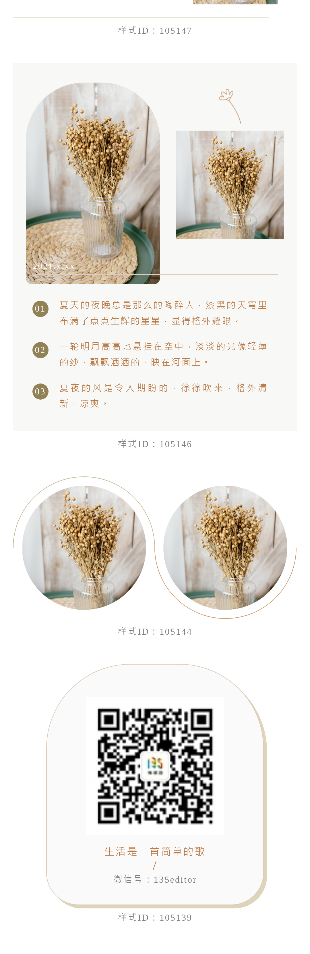 下面是三兒找來的文藝風(fēng)樣式,大家可以搜索樣式下方的ID,收藏使用~