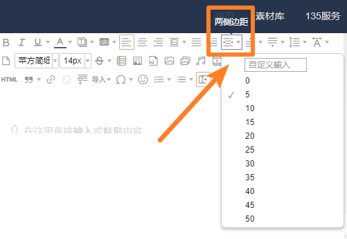 在135編輯器中,選中文字,點(diǎn)擊工具欄上方的【兩側(cè)邊距】按鈕,選擇或輸入邊距的數(shù)值即可。