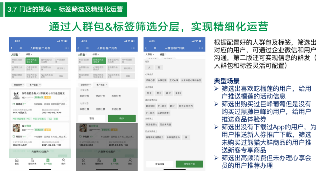 第一次的數(shù)據(jù)分析是進(jìn)群的新客和不進(jìn)群的新客,單月銷費(fèi)金額差了 7 倍,這就給我們內(nèi)部高管和加盟商建立了信心,那在這個(gè)信心之上,最后就確定企業(yè)微信是今年的主要的營(yíng)銷陣地。所以我們今年很多的活動(dòng)投放都會(huì)兼顧到私域里。