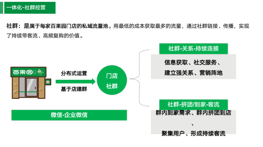 怎么才能算是「理想」的私域?私域具體能提供多少「價(jià)值」,如何衡量?jī)r(jià)值?帶著這些問題,我們找到了擁有超過 16000 個(gè)企業(yè)微信社群,近 5000 家門店,平均每個(gè)門店組建的社群人數(shù)近 1000 人私域流量池的百果園。以今年初至今百果園的私域新動(dòng)作 —— 從個(gè)人微信運(yùn)營(yíng)體系遷移至企業(yè)微信運(yùn)營(yíng)體系為例,他們做了兩件事: