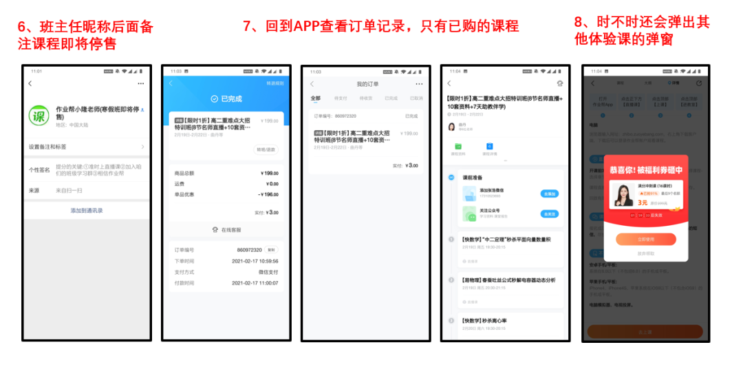 (2)減少app內(nèi)部課程彈窗和福利類(lèi)彈窗頻次,在轉(zhuǎn)化新用戶階段出現(xiàn)一些彈窗其實(shí)很好理解,但當(dāng)用戶已經(jīng)進(jìn)行過(guò)付費(fèi)之后,還頻繁出現(xiàn)其他課程活動(dòng)彈窗,個(gè)人感覺(jué)對(duì)于用戶打擾還蠻大的,尤其是當(dāng)已經(jīng)點(diǎn)擊了一個(gè)彈窗進(jìn)去,之后又會(huì)推送另一個(gè)其他活動(dòng)的,用戶體驗(yàn)和斑馬AI課app相比較差一些。(當(dāng)然也有一種看法認(rèn)為,用戶在進(jìn)行過(guò)付費(fèi)動(dòng)作之后對(duì)于其他免費(fèi)活動(dòng)或其他科目的付費(fèi)體驗(yàn)課的意向也會(huì)比較高,所以此時(shí)進(jìn)行推送能夠提高轉(zhuǎn)化,這部分由于我沒(méi)有實(shí)際數(shù)據(jù)驗(yàn)證,所以無(wú)法得出準(zhǔn)確結(jié)論)