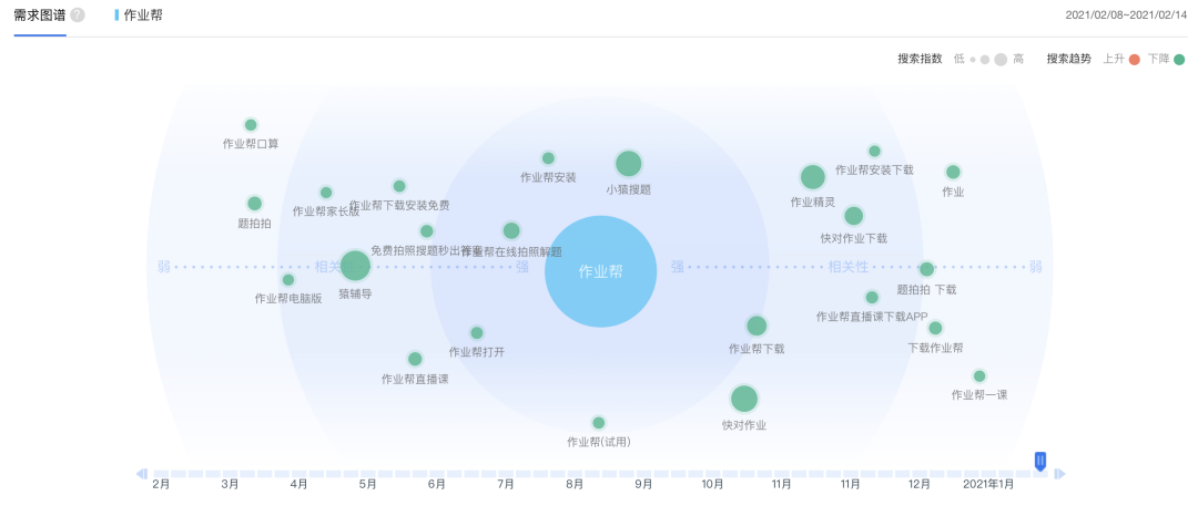 從需求圖譜來(lái)看,大部分用戶下載作業(yè)幫的需求分為2點(diǎn):拍照搜題和上在線直播課。