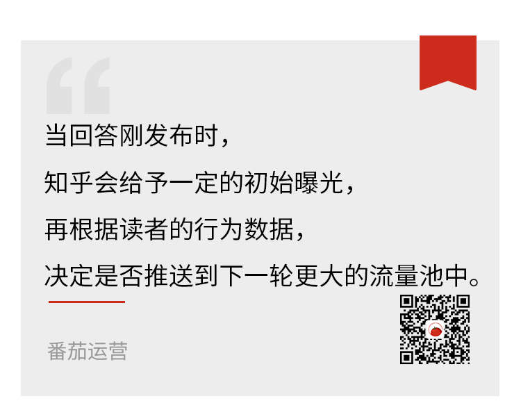 當(dāng)回答剛發(fā)布時,知乎會給予這個回答一定的初始曝光量,再根據(jù)讀者的行為數(shù)據(jù),決定是否繼續(xù)推送到下一輪更大的流量池中。