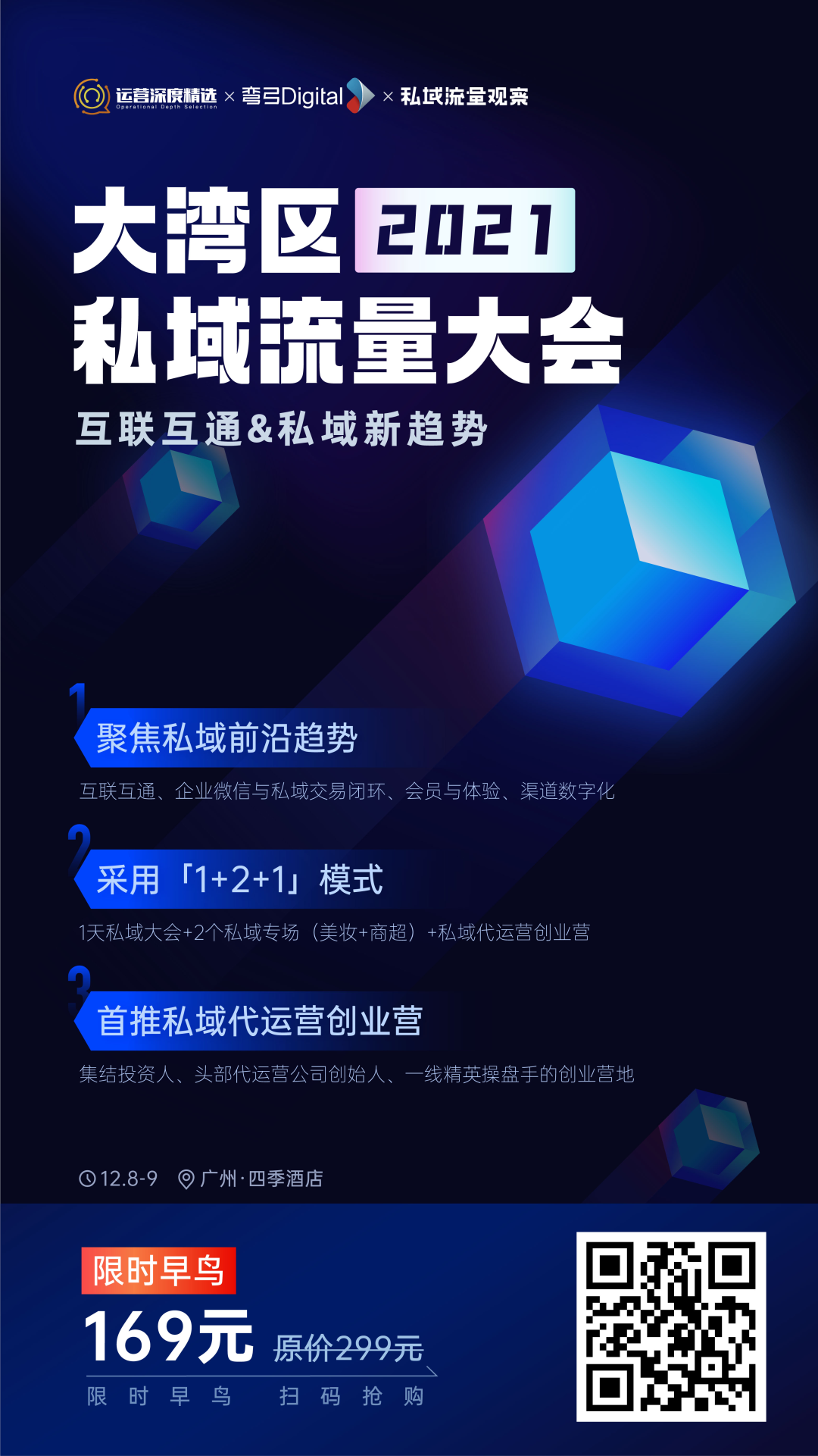 「2021大灣區(qū)私域流量大會」現(xiàn)場,《美麗洞察力》作者王茁(前上海家化董事總經理)、騰訊企業(yè)微信、名創(chuàng)優(yōu)品、屈臣氏、美的、融創(chuàng)雪世界、全棉時代、有信科技、JINGdigital徑碩科技、GrowingIO...他們也都已經準備好案例和計劃書,等你來共創(chuàng)新紀元。