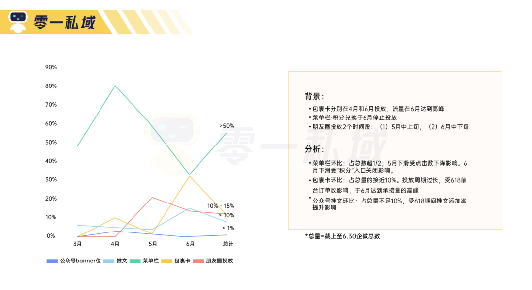 其中「私域引流」可以拆分出:公眾號(hào)、小程序、微信支付頁(yè)、服務(wù)通知、搜一搜、朋友圈投放...具體到「公眾號(hào)引流」,則包含了如下顆粒度:新增歡迎語(yǔ)、單獨(dú)推文、開(kāi)頭貼片、文末貼片、菜單欄、服務(wù)號(hào)模板消息、服務(wù)流進(jìn)度模板通知的貼片...