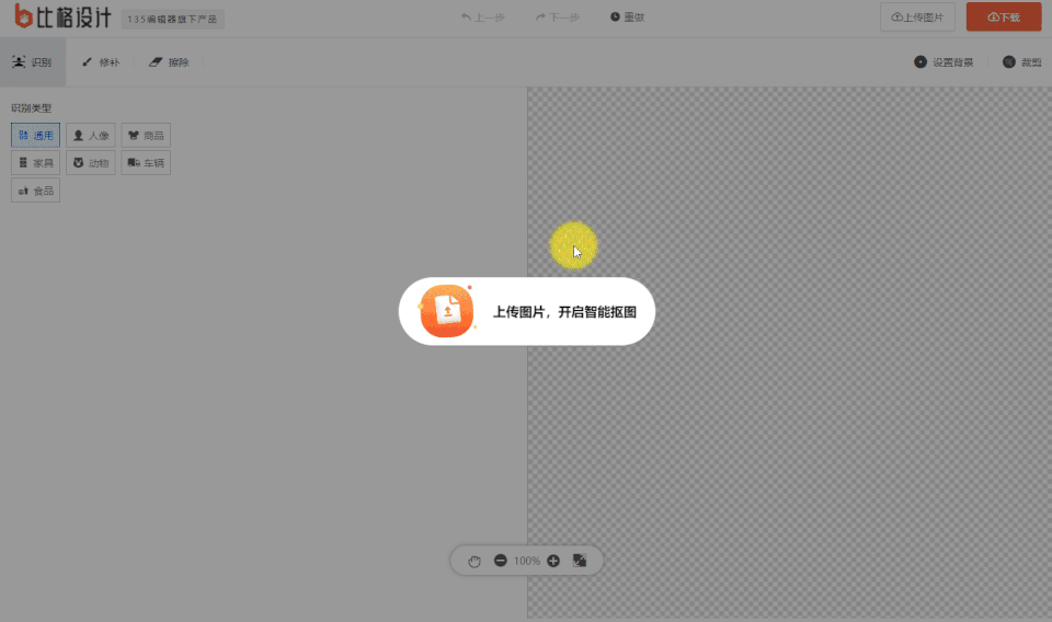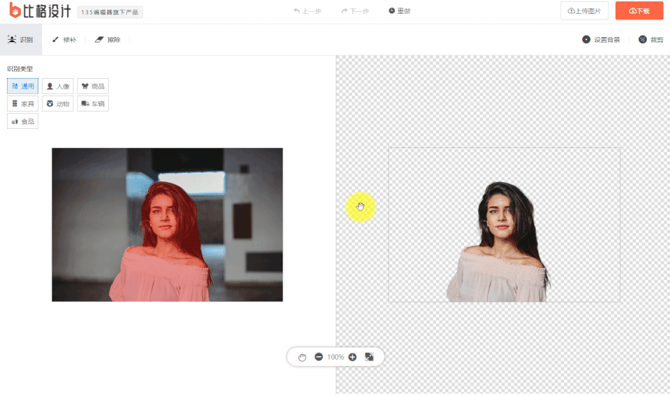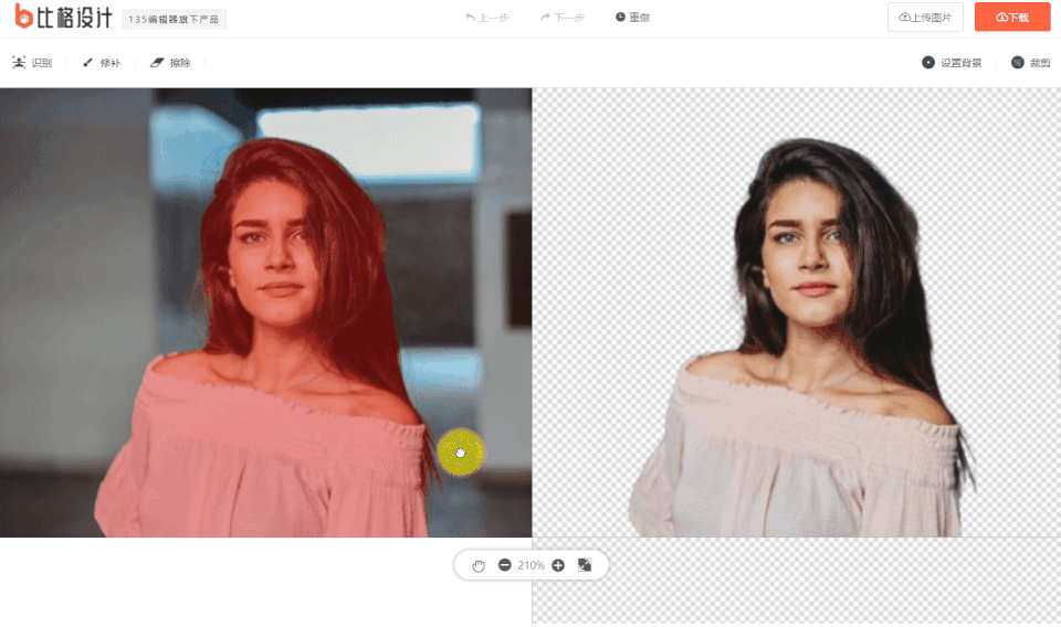 上傳完成之后,系統(tǒng)就會(huì)自動(dòng)對(duì)圖片進(jìn)行處理,智能識(shí)別需要摳圖的部分并自動(dòng)進(jìn)行摳圖;