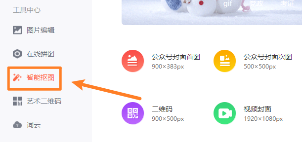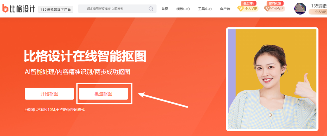 進(jìn)入比格設(shè)計(jì)官網(wǎng),點(diǎn)擊左側(cè)工具中心的【智能摳圖】,選擇【開始摳圖】;