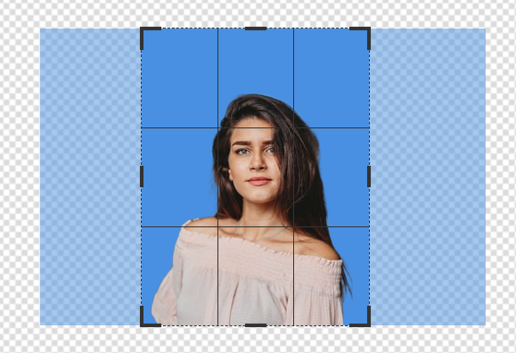 如果要制作一張純色底的證件照,在摳完人像之后,我們可以在右上角的顏色設(shè)置中選取一個(gè)背景色,并利用裁剪工具將證件照裁剪到合適的大??;