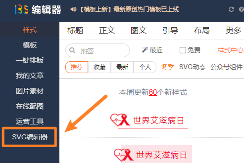 使用以下SVG需要通過135編輯器左側(cè)入口進(jìn)入SVG編輯器;