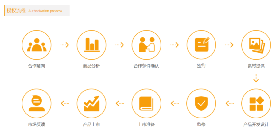 在合作意向的確認(rèn)前,作為被授權(quán)方的品牌選定IP,同時(shí)提交公司資料即合作商品的企劃書(shū),其中應(yīng)包含產(chǎn)品SKU、銷(xiāo)售及批發(fā)價(jià)格、銷(xiāo)售渠道、版權(quán)金點(diǎn)數(shù)、授權(quán)期限及是否獨(dú)家等內(nèi)容。
