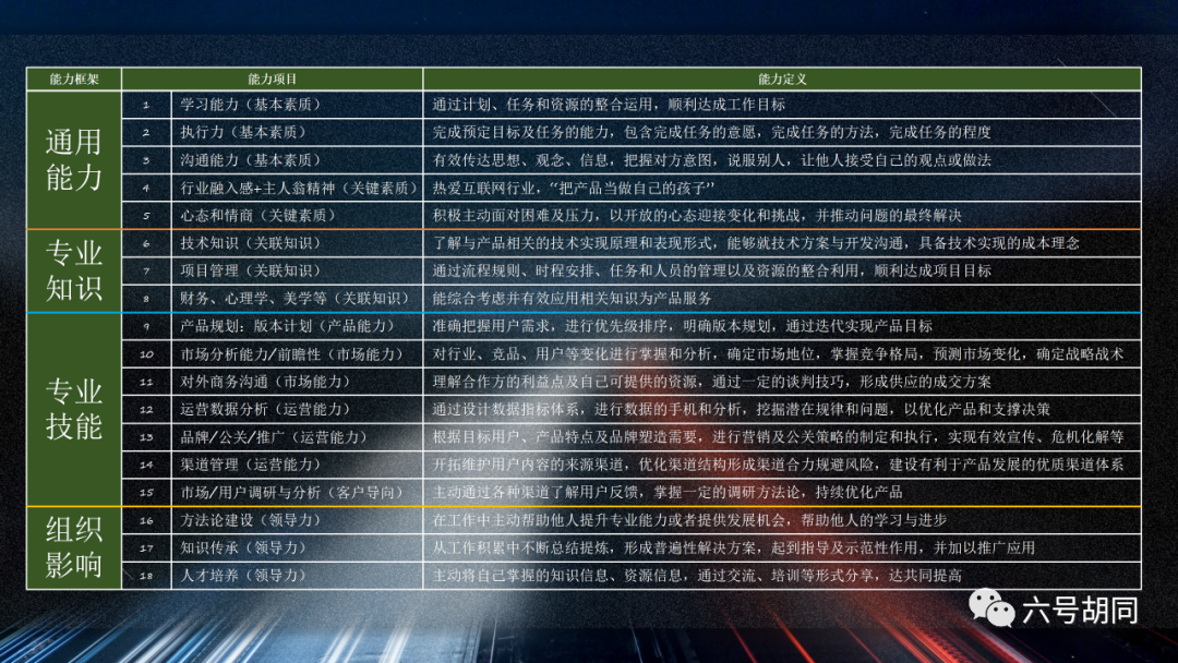 第一個就是通用能力,怎么理解?就是你在所有的公司所有的崗位你都應(yīng)該具備的能力,比如說學(xué)習(xí)能力、執(zhí)行力、溝通能力等等,你這個缺了在任何一家公司都是不可以的,所以這是最基本的要求。