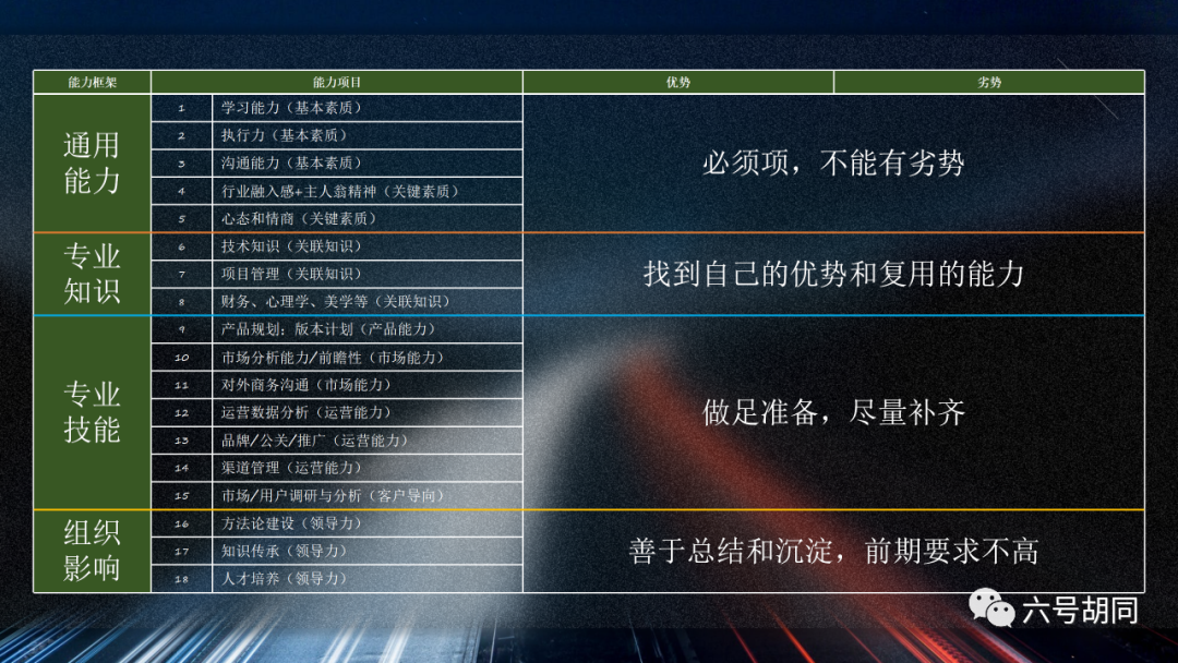 比如通用能力方面,我如果要轉(zhuǎn)產(chǎn)品經(jīng)理的話,我的學(xué)習(xí)能力要求很強,每一天都要學(xué)習(xí)更多新鮮的知識,那么在這方面,我是有優(yōu)勢可以展現(xiàn)出來,還是說這塊是我當(dāng)前不足的地方需要去彌補。